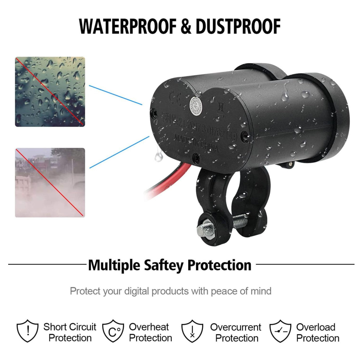 ¿Se puede usar en cualquier moto? El soporte y el cargador están diseñados para manillares estándar de 0.9 pulgadas (2.3 cm aprox.), lo cual cubre casi todas las motos y bicicletas eléctricas.