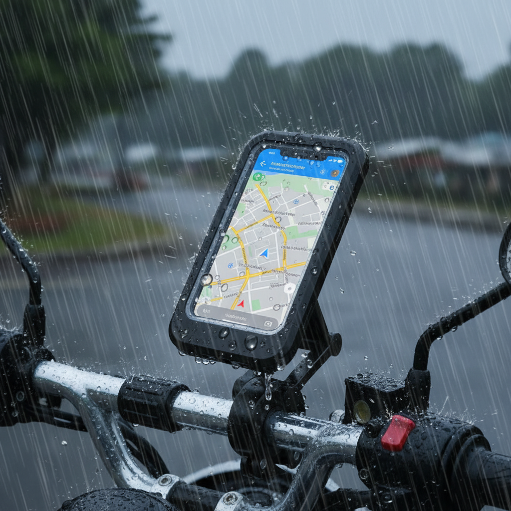 ¿Puedo cargar mi celular mientras llueve? El soporte es impermeable, pero recomendamos asegurar que la conexión del cable esté protegida para evitar humedad en el puerto de carga.