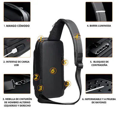 Sistema Antirrobo Avanzado: Cremalleras ocultas y diseño resistente a cortes que frustran cualquier intento de hurto. (Beneficio: Paz mental total en lugares concurridos).